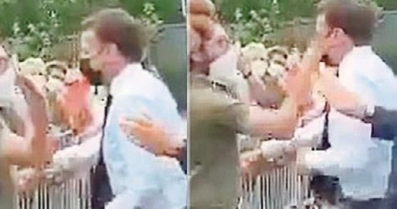 Çevredeki bir kişi macron'a tokat attı.